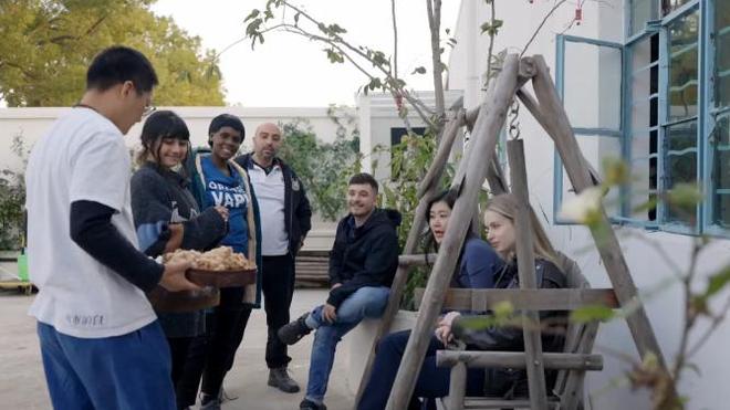 俄罗斯模特阿纳斯塔西娅穿着红蓝白条纹的短上衣,摆出专业的pose;来自英国的学生塞尔达穿着偏襟盘扣背心,在黄色的田野里露出迷人的笑容;南非画家斯蒂芬用米色粗布上衣搭配渔夫帽,带来秋天温暖惬意的感觉;来自乌干达的阿伊巴是东华大学留学生,她的红绿方格披肩和手上的同色系挎包相呼应;英国人迈克尔在上海阿德科特学校担任戏剧老师,他穿着紫色对襟小褂很有文艺气息。