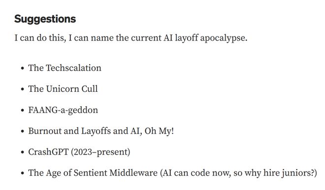 该怎样给这场灾难命名呢。互联网泡沫破裂?大衰退?独角兽大屠杀?或者CrashGPT。